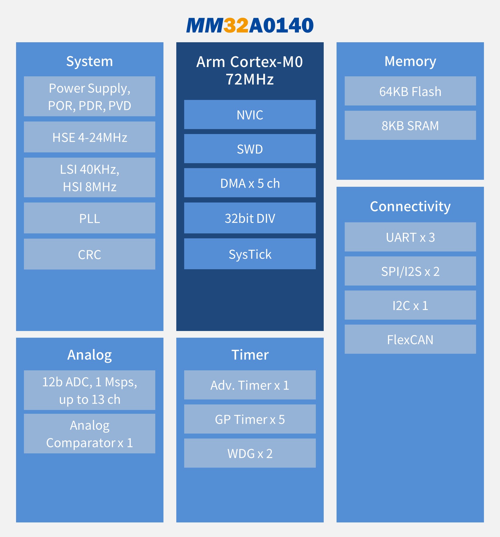 MM32A0144系列車規MCU具備的高可靠性和高性能面向車規應用的通信接口,使之能被廣泛引用于車身傳感器控制、車輛電池管理、倒車雷達、汽車空調和通風設備、充電管理、儀表和導航協處理器、行人預警與聲學車輛警示系統、氛圍燈、車窗車門控制、電機控制、車輛診斷等應用場景。需要樣片開發板測試請洽官方代理英尚微。